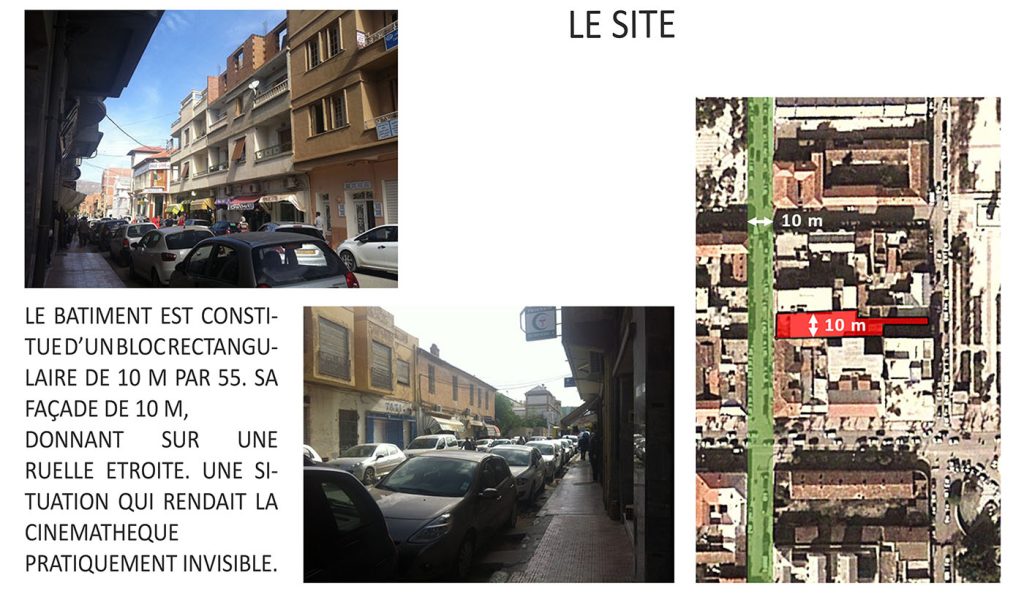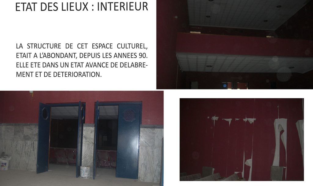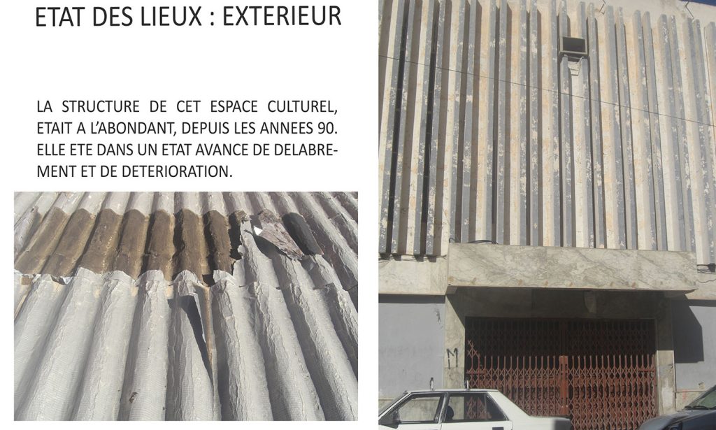 La cinémathèque de Batna n’a pas connu de travaux de rénovation ou d’entretien depuis les premières années de l’indépendance elle a arrêtée de fonctionner totalement vers la fin des années 80, elle était devenue une structure à l’abandon délabré et détérioré contenant un équipement très ancien est impossible à entretenir ou à réparer. La capacité culturelle de cette salle vient renforcer les activités culturelles de la ville de BATNA 5ème plus