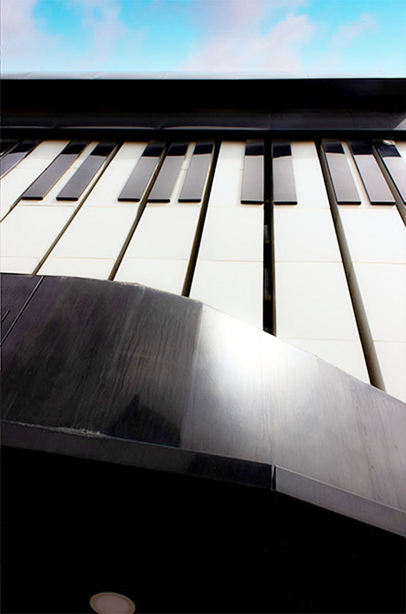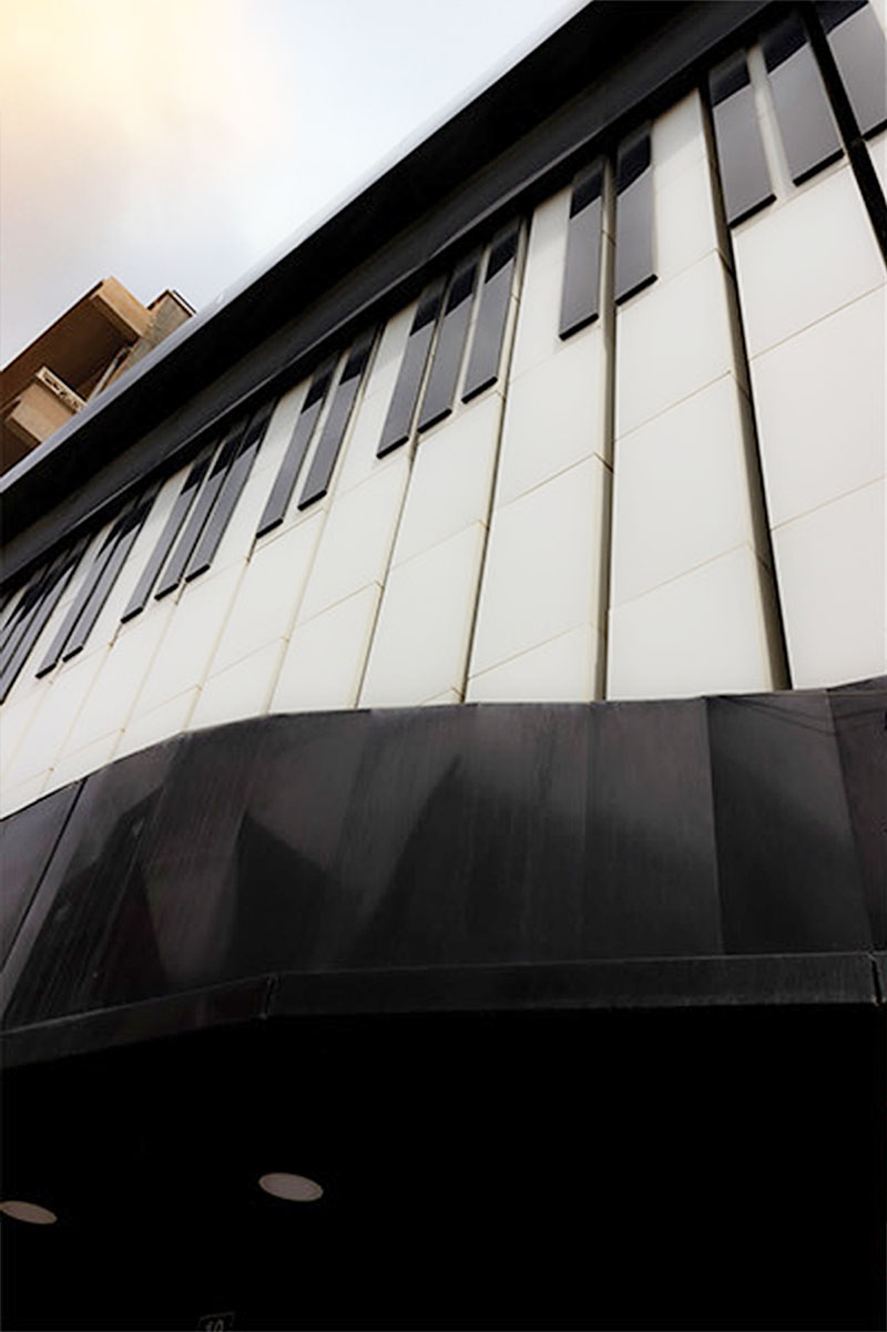 L’unique façade de la cinémathèque est orientée sud-est comprenant l’accès principal, la sortie de secours se trouve à l’opposé et donnant sur une cour intérieure. Le bâtiment est constitué d’un bloc rectangulaire de 11,5 m de large sur 55 m de long formé de trois joints :